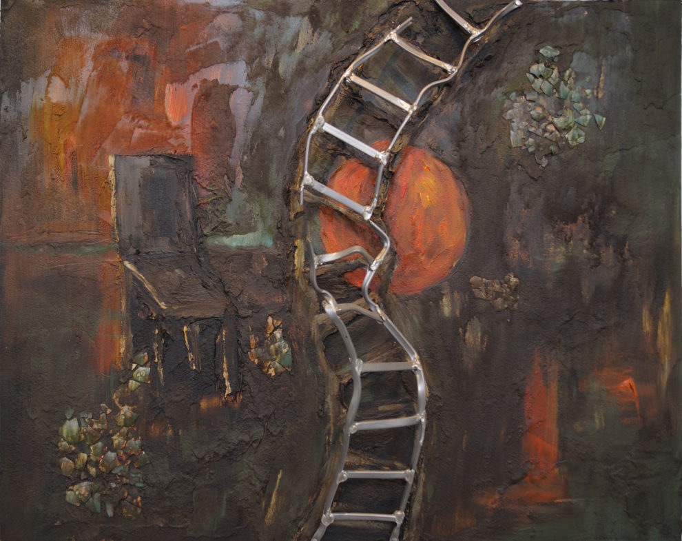 Mixed Media • Oil, Tar, Eggshell, Lead on Panel • 16 x 20 x 5 inches (40.5 x 50 x 13cm)